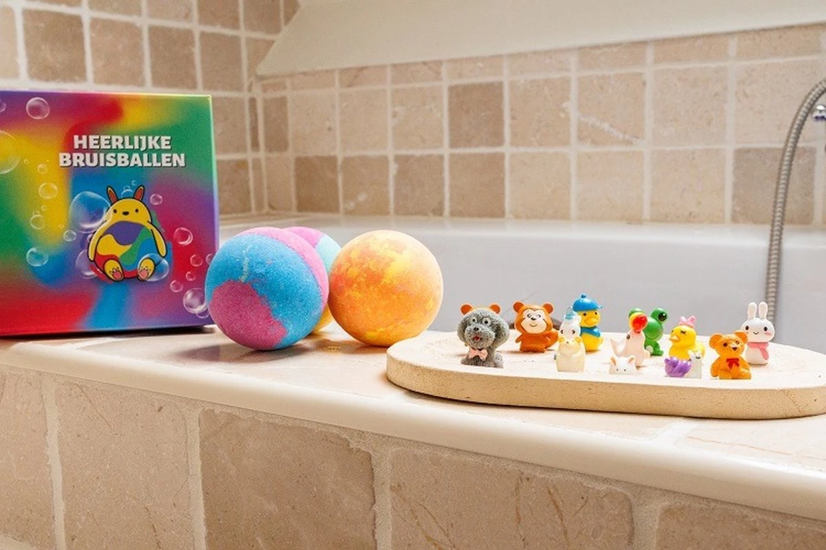 4 XL Bruisballen met speelgoed in de Bruisbal – Vegan & biologisch Large bruisbom 4X100G – leuk bad bom voor kind