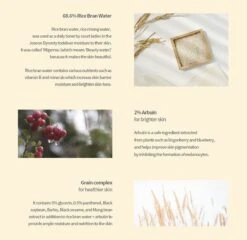 De Beauty Of Joseon Glow Deep Serum : Rijst + Arbutin is een lichtgewicht, hydraterend serum verrijkt met Hanbang (traditionele Koreaanse kruidengeneeskunde) ingrediënten voor het verhelderen van de huid en anti-pigmentatie. Zowel Arbutine als Rijst zemelen water werken effectief om de doffe huid te verhelderen en meer egale tinten te geven. Alle ingrediënten in dit serum zijn EWG green grade.