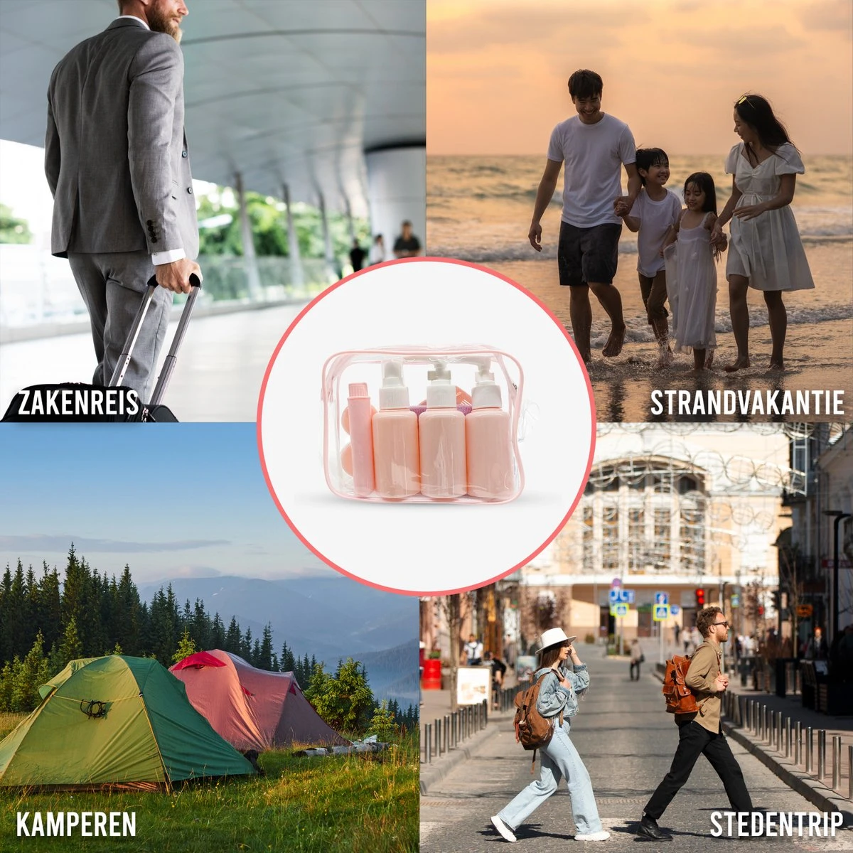 Neem al jouw favoriete verzorgingsproducten mee op reis in jouw handbagage met deze complete reisflesjes reisset!